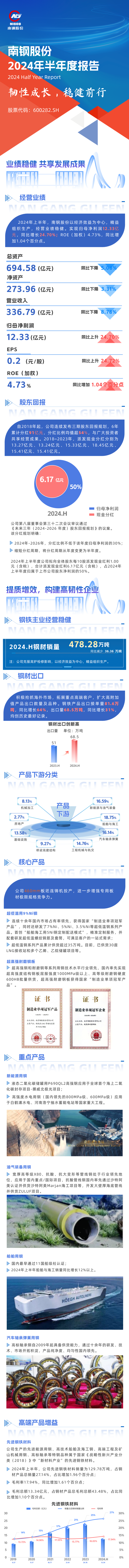 南鋼股份2024年中期盈利12.33億元,同比增長24.70%,擬每股現金分紅0.1元