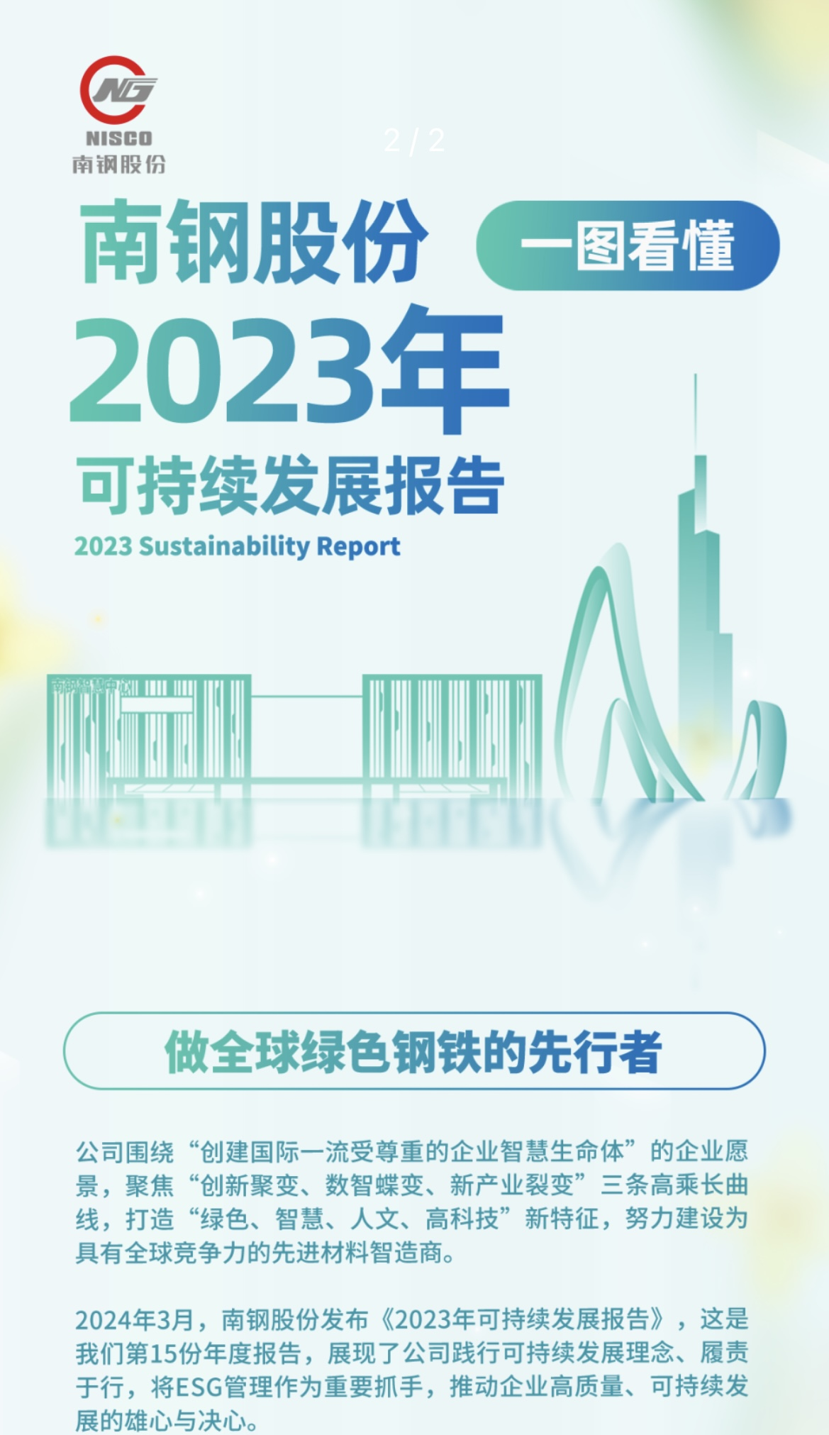 2024年南鋼發布2023年《可持續發展報告》及可視化報告