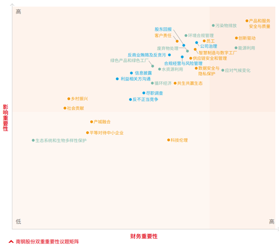 公司設立“環(huán)境友好、治理一流、科創(chuàng)引領、共生共贏”的 ESG 戰(zhàn)略目標,明確可持續(xù)發(fā)展的方向和定位,著力提升 ESG 管理水平。圍繞戰(zhàn)略目標,公司構(gòu)建“創(chuàng)新發(fā)展與卓越產(chǎn)品、共享發(fā)展與員工成長、綠色發(fā)展與環(huán)境友好、公司治理與共贏發(fā)展、和諧關(guān)系與社會責任”五大可持續(xù)發(fā)展層面,將科技創(chuàng)新與數(shù)字化轉(zhuǎn)型深度融入經(jīng)營管理全過程,強化核心競爭力,推動公司高質(zhì)量發(fā)展。公司堅持“為員工謀幸福、為顧客謀發(fā)展、為股東增回報、為社會擔責任、為相關(guān)方創(chuàng)共贏”的價值導向,持續(xù)深化可持續(xù)發(fā)展使命,朝著企業(yè) ESG 愿景穩(wěn)步前行。